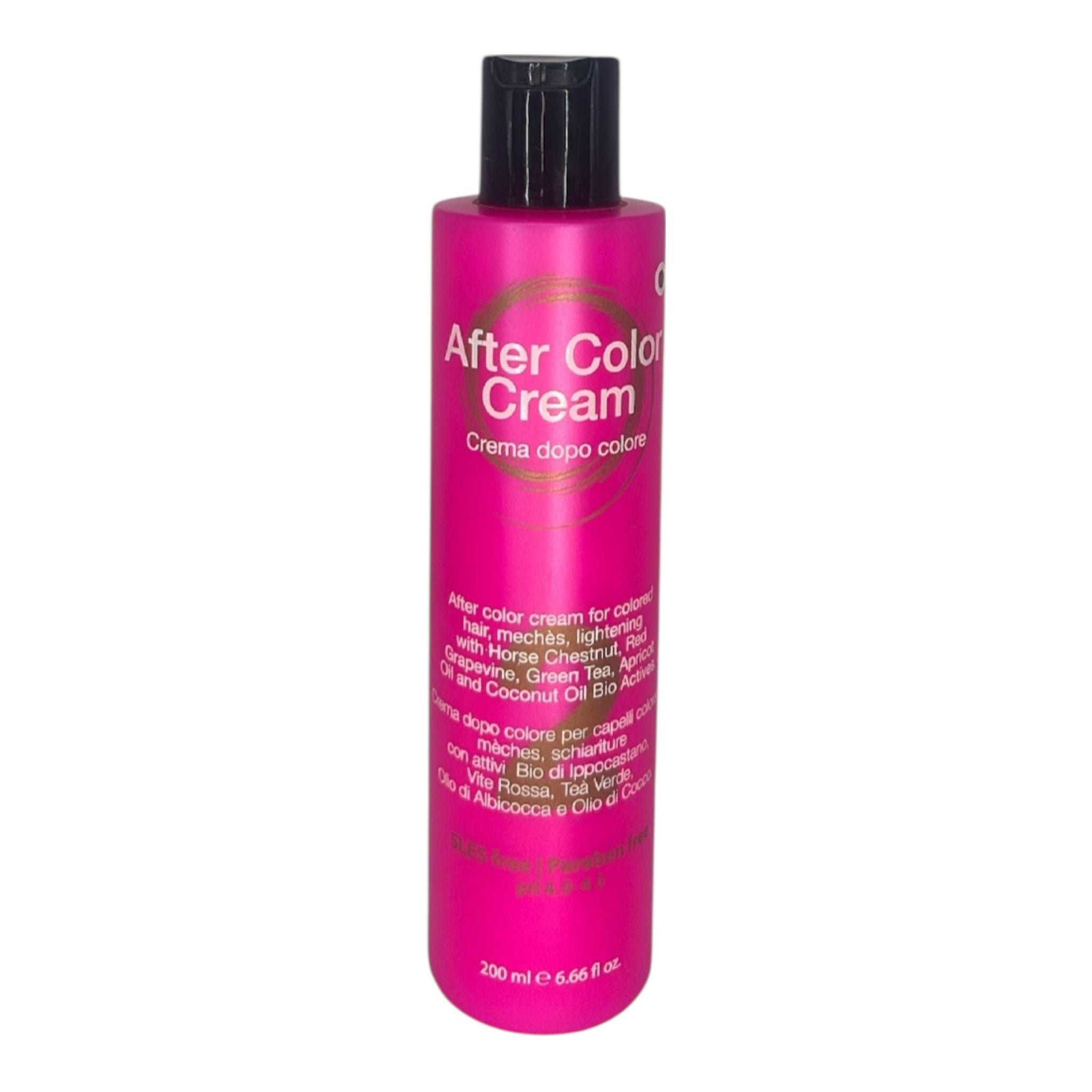 - Descrizione: Crema dopo colore per capelli colorati, mèches,schiariture con attivi Bio di Ippocastano,Vite Rossa,Teà Verde,Olio di Albicocca e Olio di Cocco.