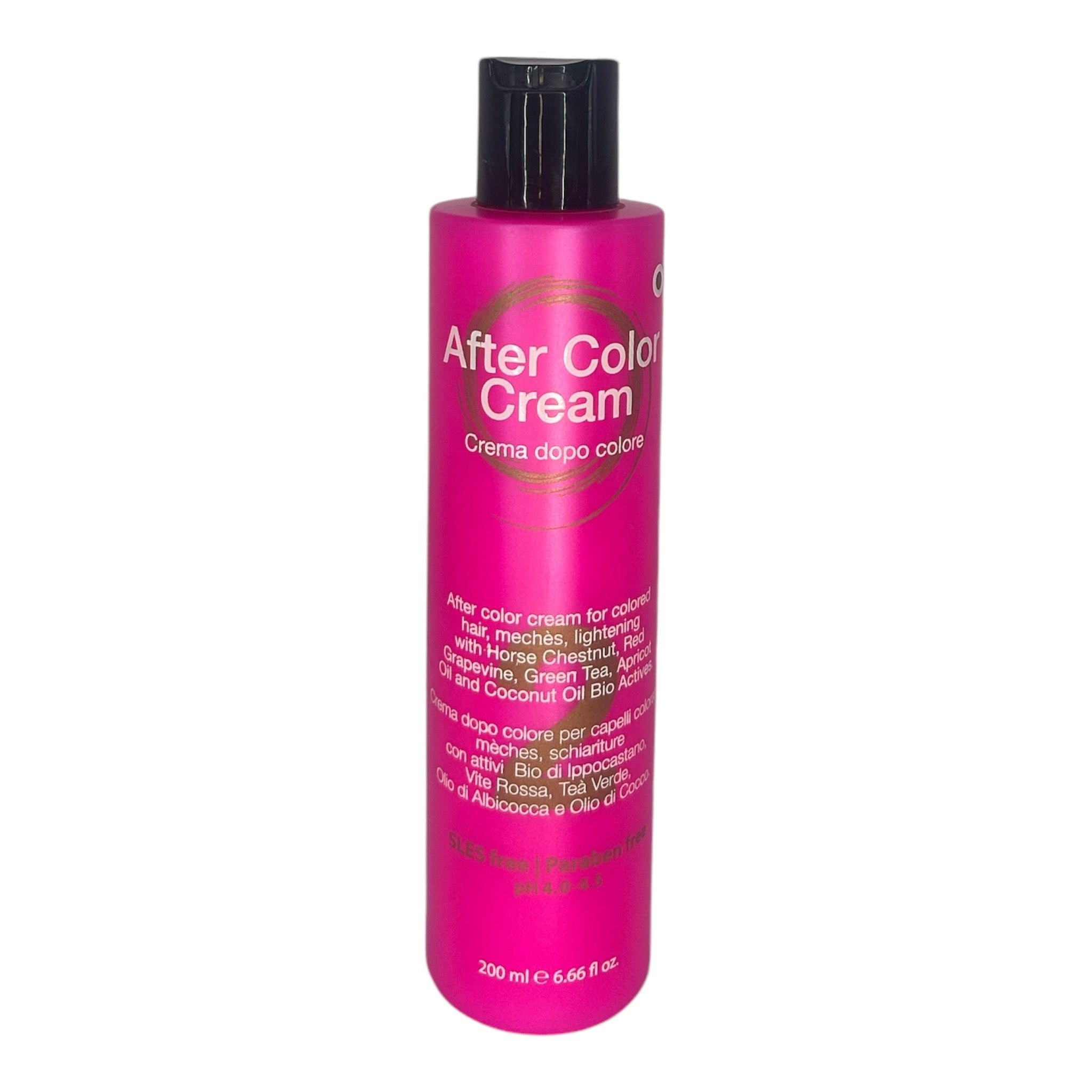 - Descrizione: Crema dopo colore per capelli colorati, mèches,schiariture con attivi Bio di Ippocastano,Vite Rossa,Teà Verde,Olio di Albicocca e Olio di Cocco.
